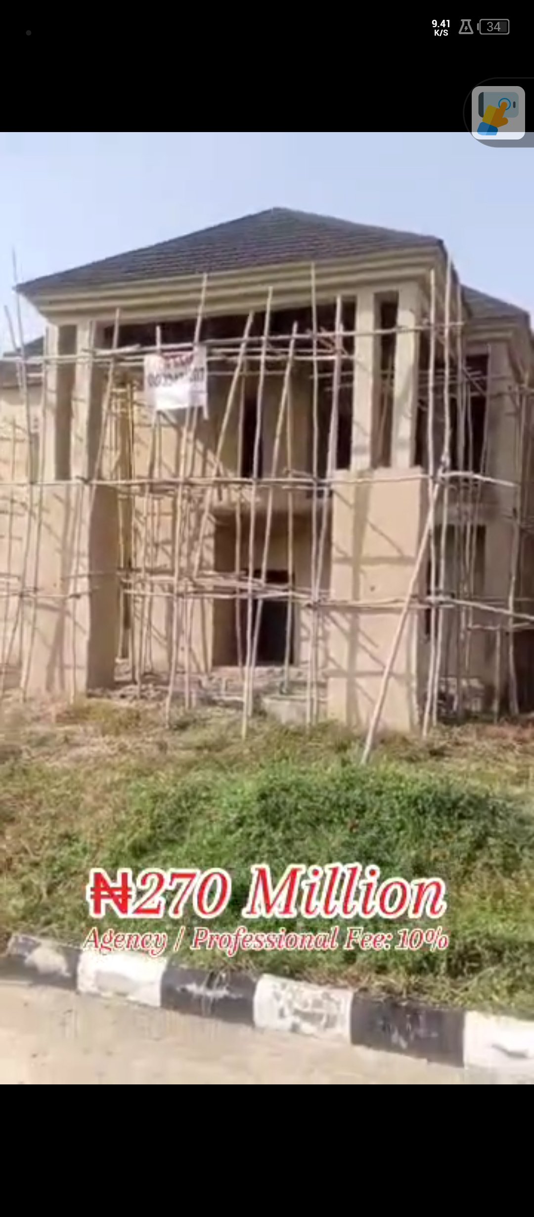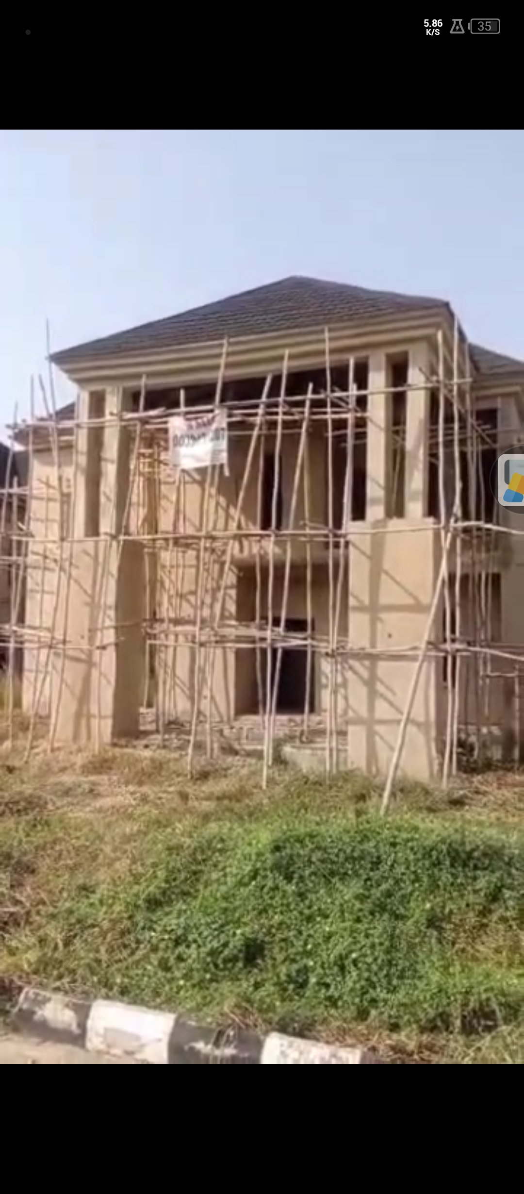 A solidly built 5-bedroom duplex carcass, plastered, with an ante room and a study. Plus a spacious compound ideal for a 2-room detached BQ, swimming pool, or garden.